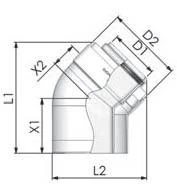 45° L1= 234 mm L2= 207 mm x1= 110 mm x2= 70 mm